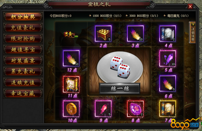 1.2 活动期间内击杀boss可获得积分,每天最多可以获得3次摇奖机会