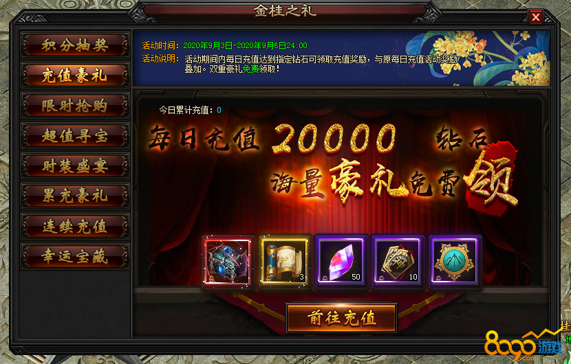 8.2.活动期间每日充值金额达到对应的奖励金额,即可领取对应的奖励