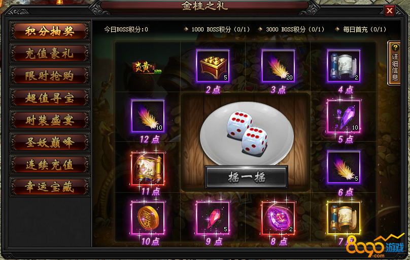 1.2 活动期间内击杀boss可获得积分,每天最多可以获得3次摇奖机会