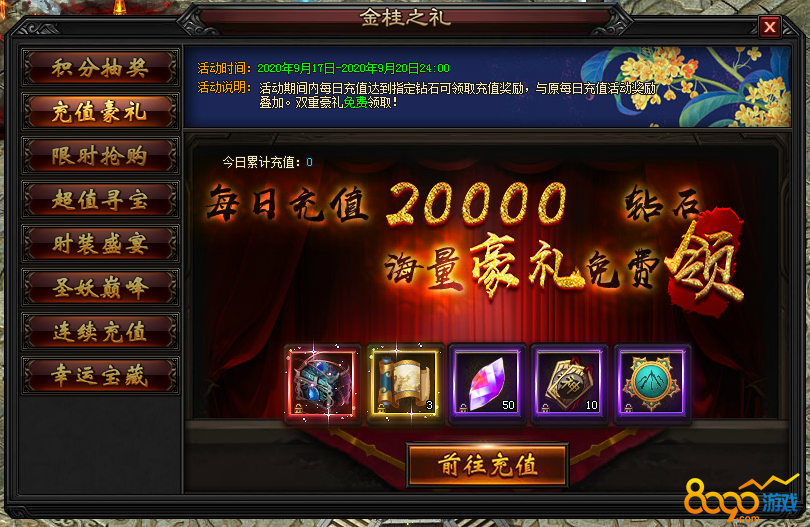 8.2.活动期间每日充值金额达到对应的奖励金额,即可领取对应的奖励