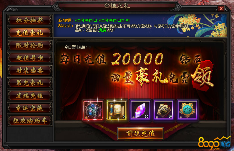 8.2.活动期间每日充值金额达到对应的奖励金额,即可领取对应的奖励