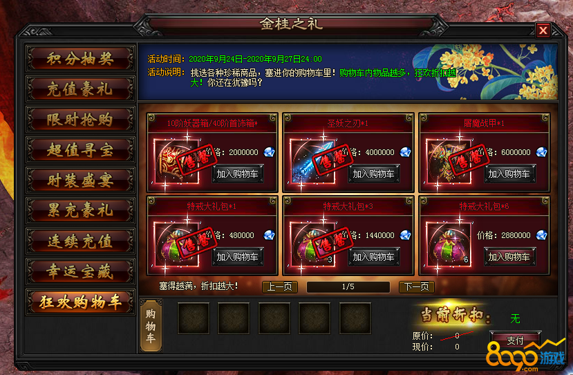 9.2 活动期间购物车内物品越多,折扣越大,每日零点重置购物车内物品