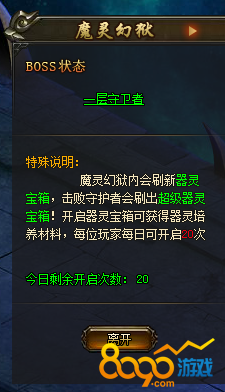 2. 魔灵幻狱内每天可以开启20次器灵宝箱。