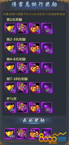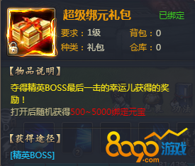 对BOSS造成最后一击的玩家可获得丰厚的奖励,有机会开出500-5000绑定元宝啊!