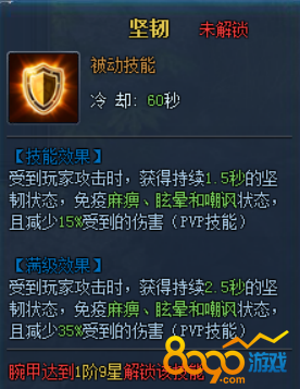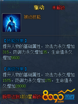 2)腕甲技能:达到指定的阶数后,可解锁腕甲技能,解锁技能后,可通过使用技能书进行升级。