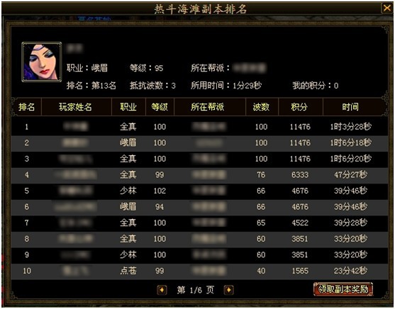 这个副本的奖励规则也与之前有所不同,根据玩家通过的波次以及消耗的时间,系统会算出一个完成度,根据完成度的多少给予相对应的积分,玩家通过积分可获得不等的奖励。需要说明的是,完成度是以玩家离开副本的时间结算的,也就是同一个队伍,有可能每个人的完成度都不一样。
