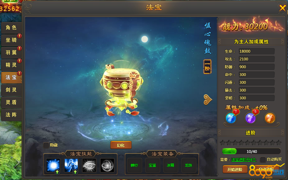 3、 法宝需要达到对应的等阶,才能佩戴该阶的装备。