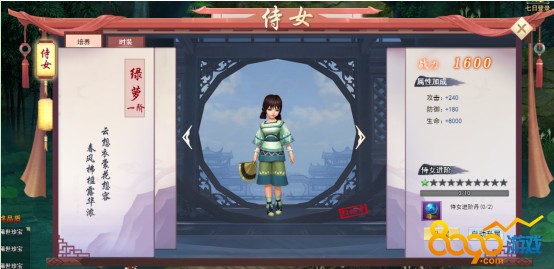 二、 侍女的培养:打开侍女界面可对侍女进行培养