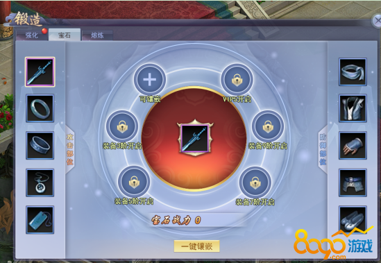 游戏中可获得一些神秘的宝石,宝石镶嵌后可提升装备大量属性,是玩家打造神兵利器的必求之物