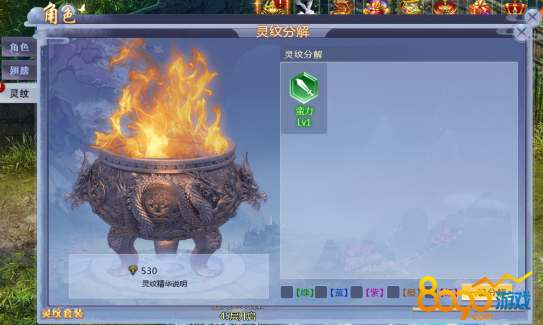 灵纹分解可以获得灵纹升级的材料,蓝色和绿色的灵纹可以用于分解,获得升级材料再给灵纹进行升级。