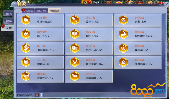 灵纹系统开启后,拥有八个灵纹孔,灵纹爬塔通关层数越高,灵纹孔开启越多。
