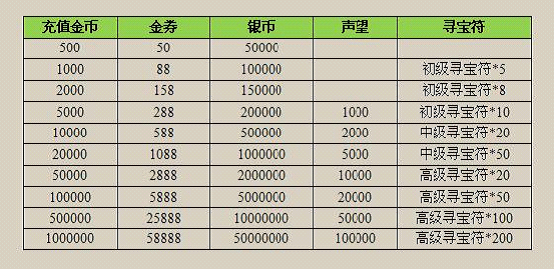 活动规则:单笔充值500金币以上,享有5%~10%的金券立即返利,以及大量声望和道具奖励,具体奖励如下: