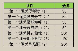 活动规则:开服7天内,本服第一个通关指定副本的玩家可获得额外金券奖励。