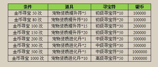 活动规则:金币寻宝到一定次数时,将享有大额返利,具体奖励如下: