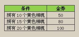活动规则:开服30天内,拥有一定的黄色精魄可获得额外金券奖励。