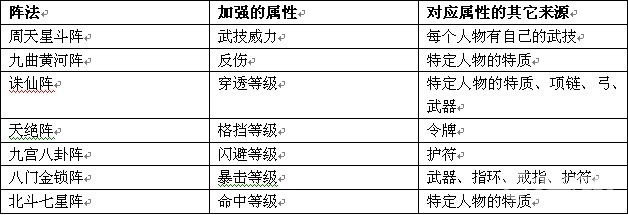 其中每个阵法给提升的属性有: