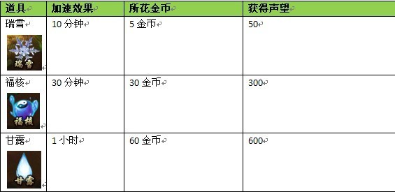 相同加速效果下,瑞雪能花费较少的金币加速,性价比较高。而福核、甘露能获得更多的声望,如何取舍大家可以自己把握了。