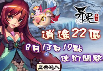 一起来玩8090异界逍遥吧。万众瞩目,8090异界逍遥双线二十二区将于2012年8月13日19点火爆开启!丰富的开服活动,精彩的游戏内容,都等着您来参与!赶紧加入8090异界逍遥,一起打造一个属于我们共同的美轮美奂的玄幻世界!