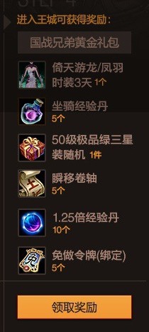 3.国战兄弟黄金礼包:随便一个QQ号在2013.4.27—2013.5.15期间任意区创建一个号(练到40级,大号挂机,闲着练练小号不知不觉就到40级了)然后点领取奖励(用这个40级的号所在区服角色)获得一枚激活码,然后在CDK兑换中心选择你老区的区服和角色名,激活即可。