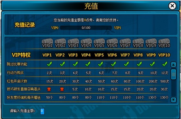 至尊VIP 10级:250万金币、1000游戏币、250张特训卡、中级紫装礼包X1