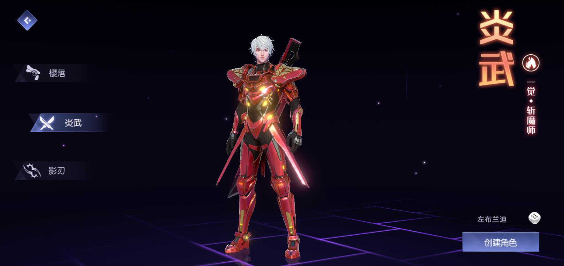 游戏里玩家可以扮演三个角色,分别是樱落、炎武、影刃。