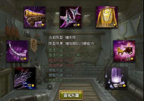 当前阵型:锥形阵,阵型效果:增加部队闪避能力。