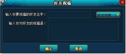 【好友祝福卡】:可以对一个好友进行祝福,双击后可输入你要祝福的好友名字以及祝福语,好友收到祝福后还可以额外获得【好友礼包】;
