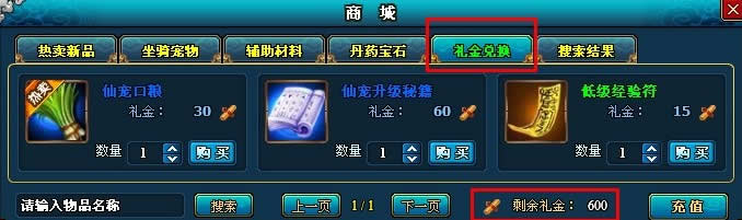 活动奖励:商城礼金兑换区领取600礼金。可用于购买低级经验符,低级灵力符,初级合成符,初级打孔符,初级镶嵌符,仙宠升级秘籍等精选道具。