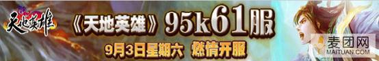 天地英雄是2011年RPG网页游戏巨作,以角色扮演为主,回合制战斗的游戏。炫丽的职业特色技能,强大的阵型系统,丰富的游戏玩法,无需下载客户端,打开网页,就能以英雄身份带领精心培养的名将部队驰骋于乱世之中。95k《天地英雄》“95k61服”将于2011年09月03日11:00震撼开启,精彩的活动,丰厚的奖励等你来!