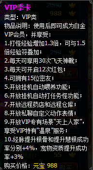 注:VIP可以享受到最特别的待遇,为了使你更显尊贵,玩家在成功开通VIP以后,角色的名字会变为醒目的特殊标识,角色面板并伴有被点亮的VIP图标提示。