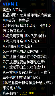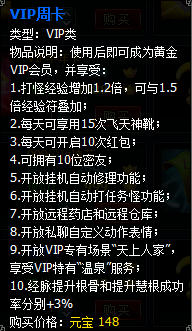 注:VIP可以享受到最特别的待遇,为了使你更显尊贵,玩家在成功开通VIP以后,角色的名字会变为醒目的特殊标识,角色面板并伴有被点亮的VIP图标提示。