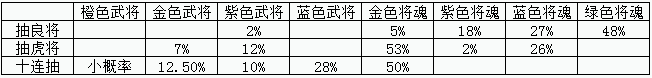 一品三国招贤馆武将抽取概率公示:
