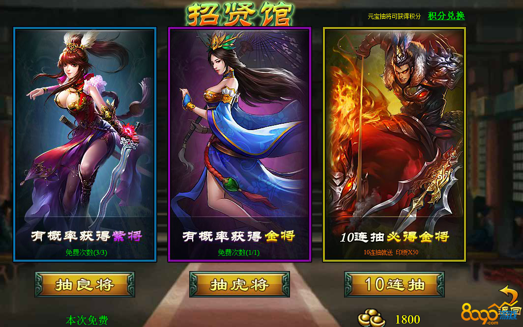 用元宝招募会获得兑换积分,积分足够的话,可以兑换自己喜欢的武将
