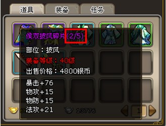 紫装侯双披风需要5个碎片,集成5个系统自动合成。