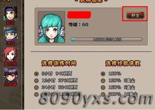搜索"8090网页游戏"武将转生系统攻略之一骑当先武将如何进行转生