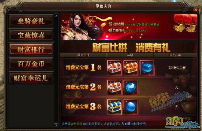 活动详情:活动期间消费满20W元宝就可以参与排行,活动结束后奖励会已邮件的方式发放给玩家,一定要记得提取~