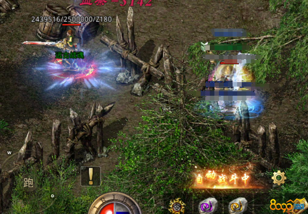 3.远古道魂,道魂的卡法也是和法魂一样需要卡住他攻击不到的点,需要引到图中所表示的槽点来卡住。然后去到对立面来打。但是他的神兽会卡不住也会攻击。道士依旧用嗜血术攻击(召唤物休息或跟随)