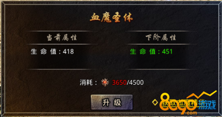 1.血魔圣体最高能提升到50阶等,可通过消耗血魔精华来提升,每提升1阶都会获得属性提升