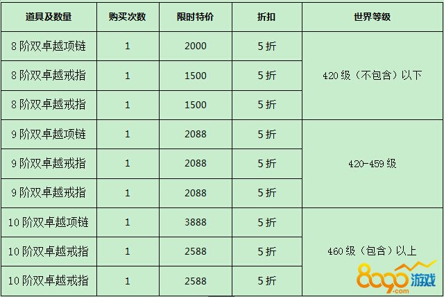 活动内容:玩家可在商店内购买适应世界等级的双卓越首饰,并享受5折优惠。(不同区服玩家世界等级不同,元旦神秘商店中内容有可能不同,详细商店内容以游戏中内容为准)。