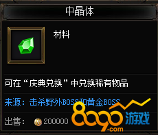 2. 活动时间内,玩家击杀野外BOSS及黄金BOSS,会随机掉落“中晶体”。