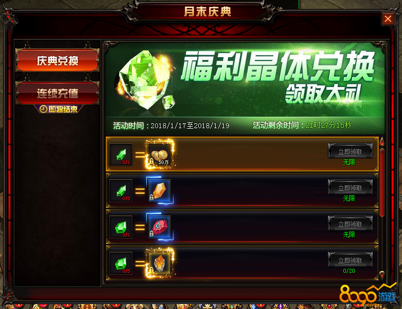 3. 活动时间内,收集齐要求的道具(小晶体、中晶体),可以在活动界面兑换其他物品奖励。