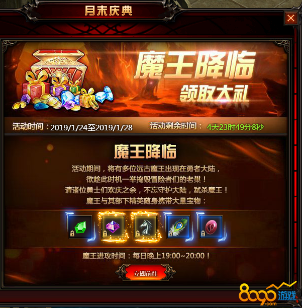 活动内容:活动时间内,每天晚上19:00~20:00勇者大陆会刷新魔王BOSS,击杀BOSS后可获得大量稀有道具奖励和中级晶体。