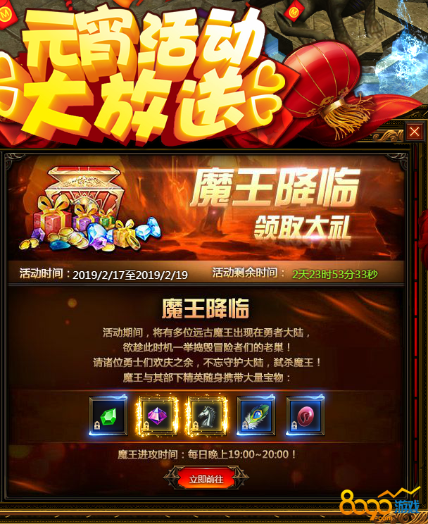 活动内容:活动时间内,每天晚上19:00~20:00勇者大陆会刷新魔王BOSS,击杀BOSS后可获得大量稀有道具奖励、五仁秘方、枣泥秘方、豆沙秘方和中级晶体。