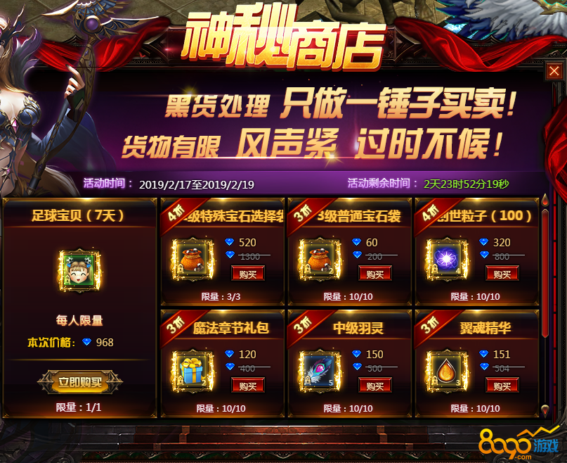 活动内容:神秘商品限时折扣,全场最低折扣低至2折,货物稀有,难得一见,快来选购吧。