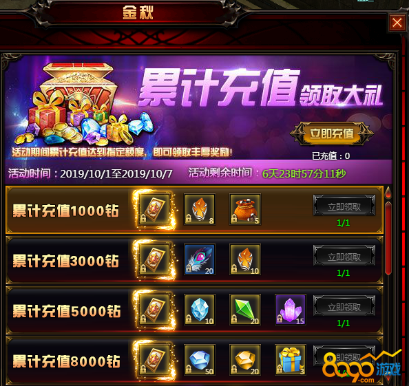 活动内容:玩家在活动时间内,累计充值达到一定钻石即可获得丰厚礼品!