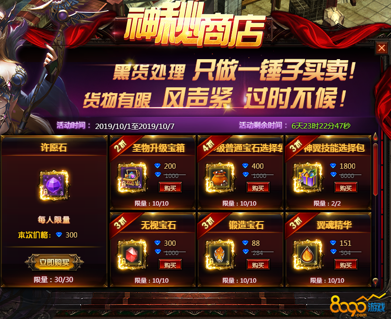 3.玩家也可以在神秘商店中购买许愿石许愿,许愿石许愿必得稀有品质以上宝箱。