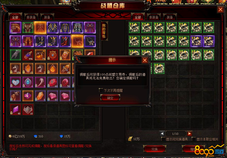 3) 玩家通过消耗战盟交易券获得战盟仓库中的装备,同一件装备获得和消耗的战盟交易券相同。