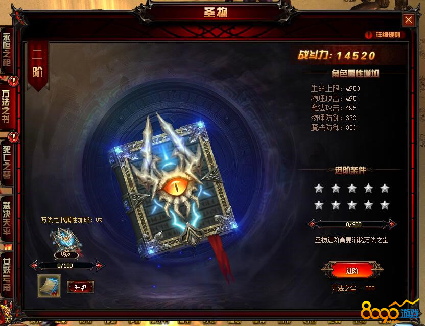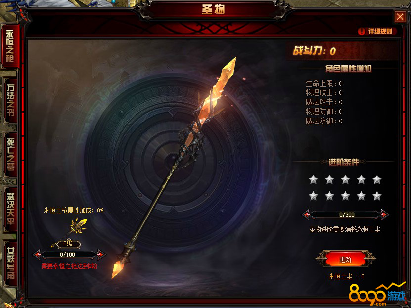 2) 圣物2阶后通过周活跃豪礼获得圣物升级道具为圣物升级,百分比提升圣物属性加成。