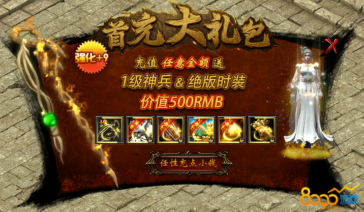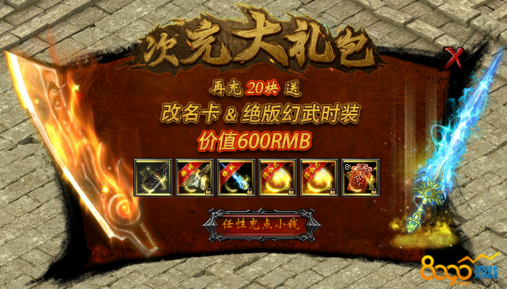 【活动内容】新区开启后充值任意金额即可获得传奇荣耀首充礼包。