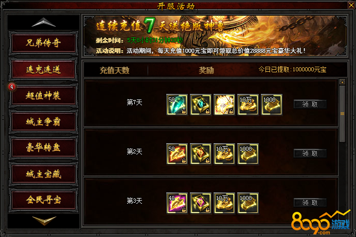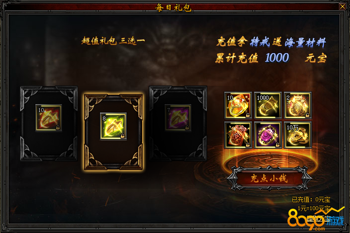 【活动内容】活动期间,每天充值1000元宝即可领取总价值28888元宝大礼!
